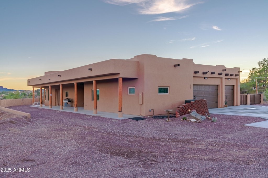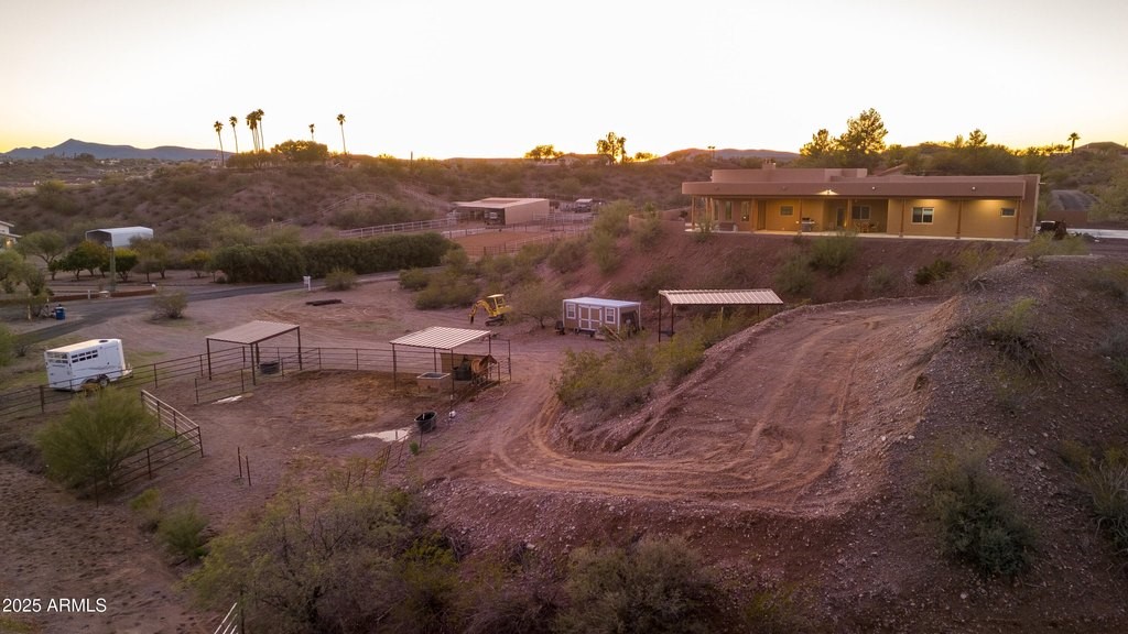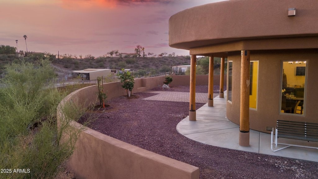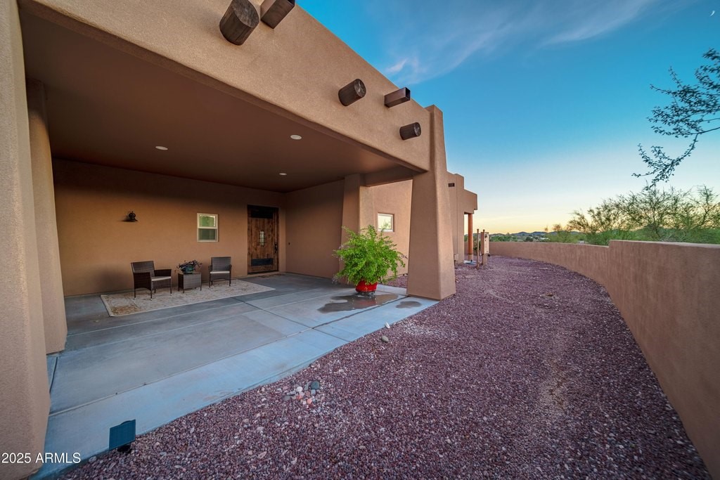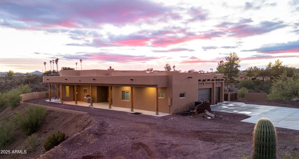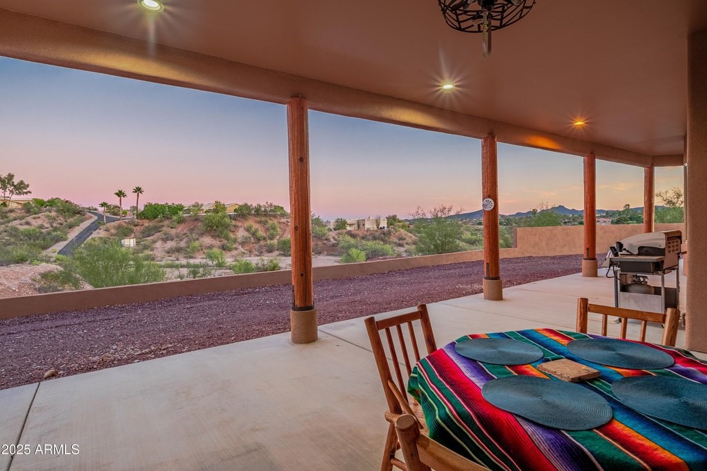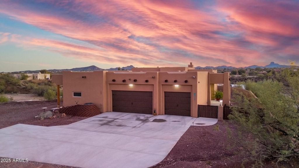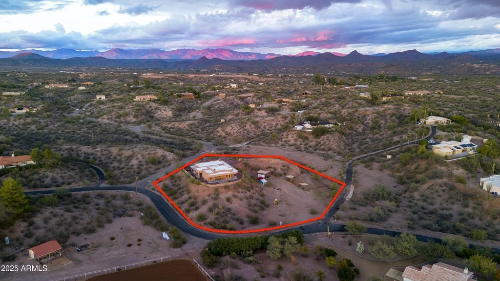 Southwestern charm and modern design in this newly constructed custom home, completed in November 2023. Offering 2,280 sq. ft. of living space and 1,310 sq. ft. of covered patios (over 4,430 sq. ft. under roof), this property was thoughtfully designed for comfort, entertaining, and equestrian living. Step inside to find two spacious master suites, each with private patio access and walk-in closets. The main suite features a luxurious walk-in shower with dual shower head separate tub. Gourmet kitchen with custom knotty alder cabinets, travertine floors and granite countertops. Custom beehive fireplace and panoramic views from this home. RV Hookup, Covered storage, Tack Room, Two large stalls and easy trailer parking, paved street. 400 Amp service ready for you to put in a barn/casita,
