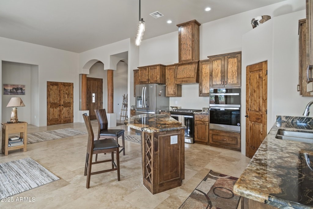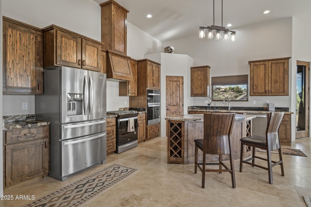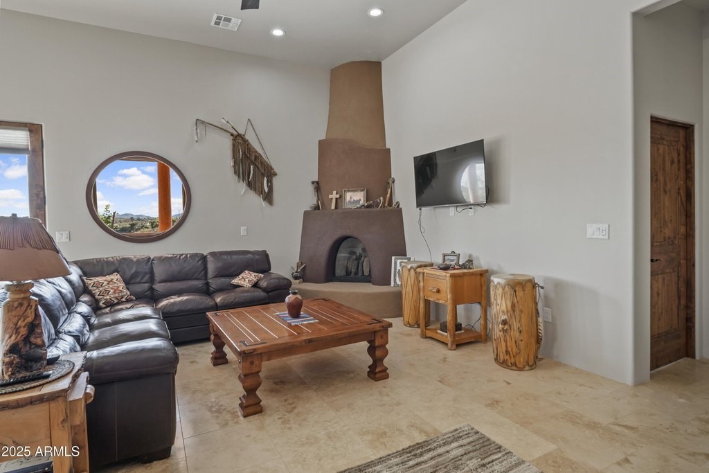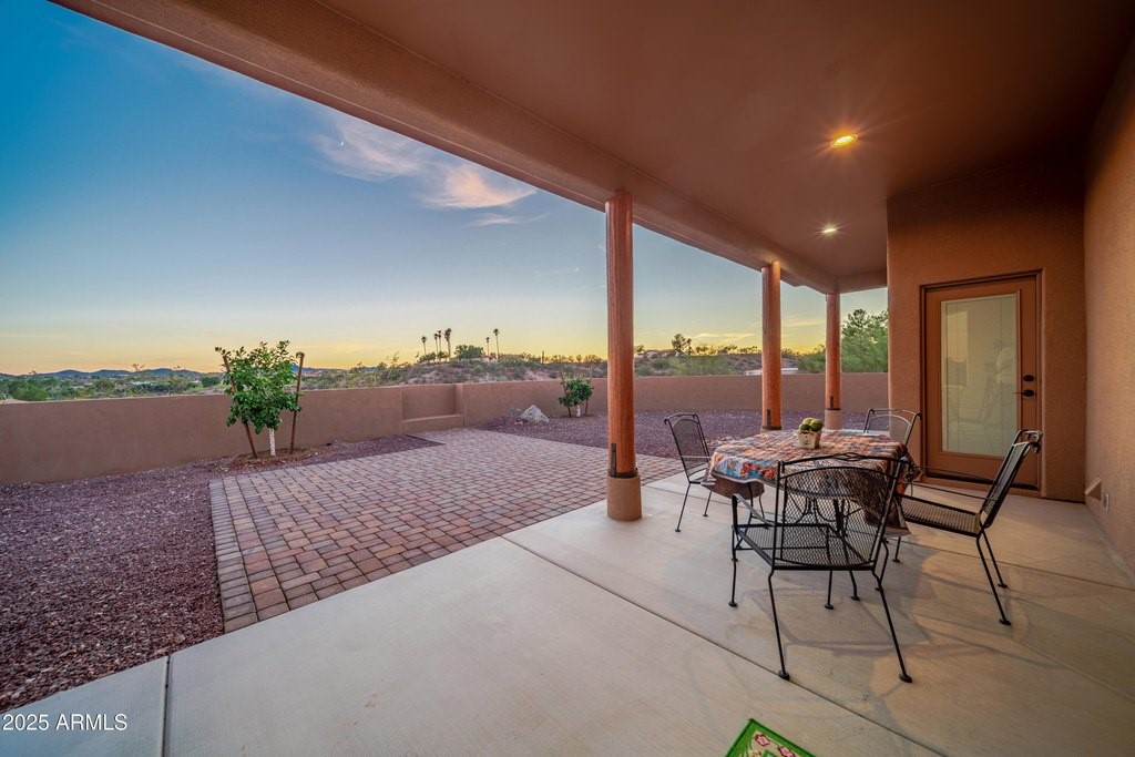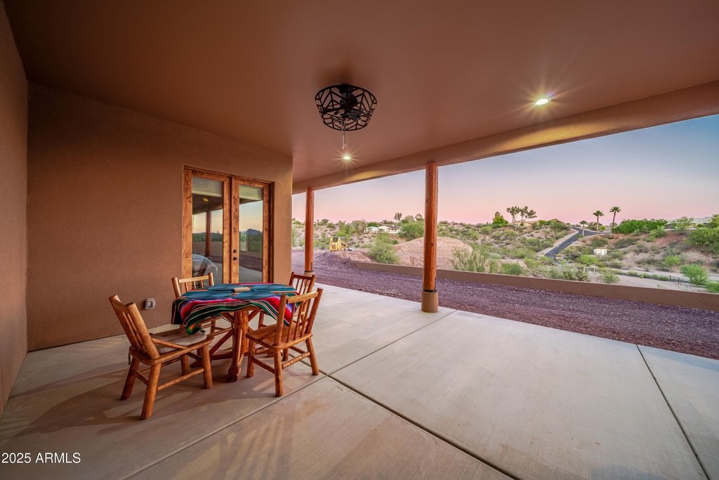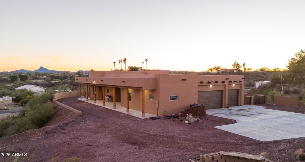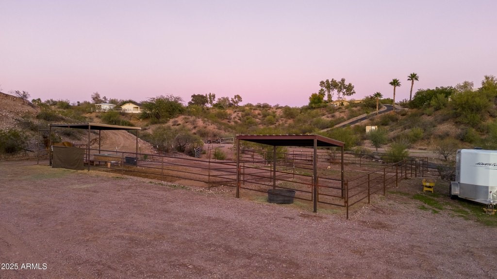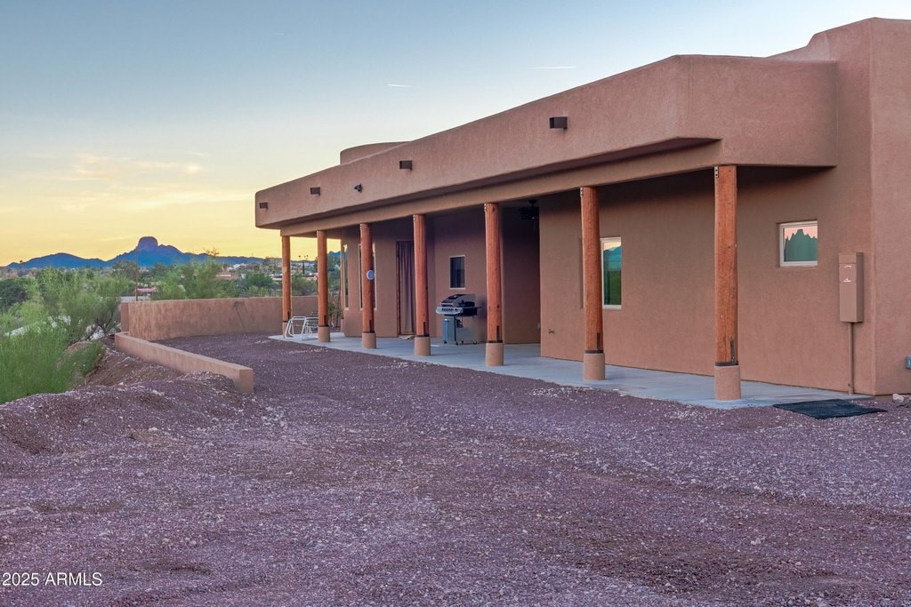 Southwestern charm and modern design in this newly constructed custom home, completed in November 2023. Offering 2,280 sq. ft. of living space and 1,310 sq. ft. of covered patios (over 4,430 sq. ft. under roof), this property was thoughtfully designed for comfort, entertaining, and equestrian living. Step inside to find two spacious master suites, each with private patio access and walk-in closets. The main suite features a luxurious walk-in shower with dual shower head separate tub. Gourmet kitchen with custom knotty alder cabinets, travertine floors and granite countertops. Custom beehive fireplace and panoramic views from this home. RV Hookup, Covered storage, Tack Room, Two large stalls and easy trailer parking, paved street. 400 Amp service ready for you to put in a barn/casita,